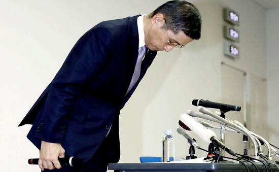 刘女士提供的案例让人瞠目结舌,东风日产对核心零部件的品质管控水平如此低劣?这一案例也许有一定偶然性,但是如果结合相关新闻一起看,事情恐怕真的没有那么简单:2017年,日产汽车在产品质检环节爆出丑闻,为防止在汽车质检中失误造成的影响进一步恶化,日产汽车宣布对6家日本工厂暂停生产至少两周时间,对车辆进行排查。日产首席执行官西川广人在横滨总部新闻发布会上向公众鞠躬道歉(见下图)并表示,经调查后发现一些工厂将需要终检的车辆转移到他处,造成这部分车辆并未完成最后一道检查程序。