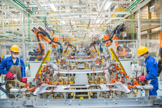 其中,机器人玻璃自动涂胶技术,从涂胶玻璃自动抓取、定位与压紧,到涂胶轨迹自动扫描识别、自动涂胶、自动纠错保证涂胶胶型均匀,精度要求的偏移量≤0.01mm,质量水准之高可见一斑。又如采用的中频自适应焊接技术,使白车身焊点强度合格率,由以前的99.5%提高到99.9%。