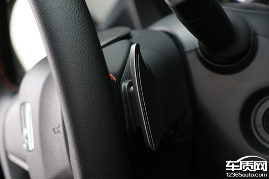 潮跑+版飞度专属配备——方向盘后方的换挡拨片,采用“左减右加”布局,拨片操作手感还可以,不像是在按塑料玩具。