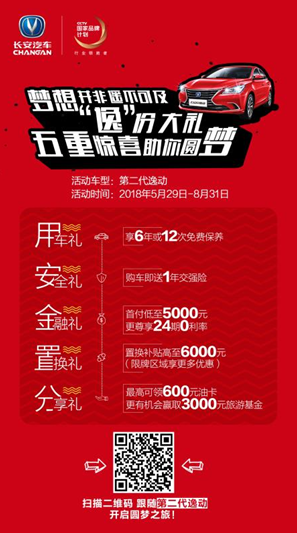 第二代逸动7.49-10.59万元的价格已经非常亲民,这次第二代逸动在这个夏天又集中发力,推出了“逸份大礼五重惊喜”主题活动,五重大礼一定让你花最少的钱买到最中意的座驾。