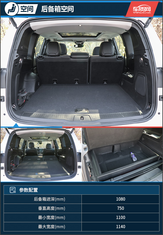 由于指挥官是五座版本,所以后备箱是一大优势。后备箱地台十分平整,并且地台高度较低,拿取物品十分方便。虽然官方没有给出具体容积数值,但从实车表现来看,一家出行绰绰有余。将后排座椅按比例放倒后,容积进一步扩展,同时得益于车顶非常平直,搬拿体积较大物品完全没有问题。除此之外,指挥官备胎采用下挂式,所以盖板下拥有一个巨大储物槽,非常实用。