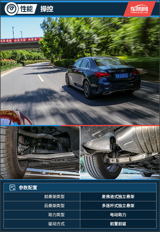 此次试驾的A200L选装了后多连杆独立悬架,虽然整体调校比较紧绷,但舒适性方面的表现依然能令人满意。悬架对于路面小幅颠簸与震动可以快速过滤,同时还能将部分路感通过底盘传递给驾驶者,既不会对车内乘客的舒适性造成影响,同时还能够辅助驾驶者掌握路面信息,这样的调校很符合奔驰A200L运动化定位。