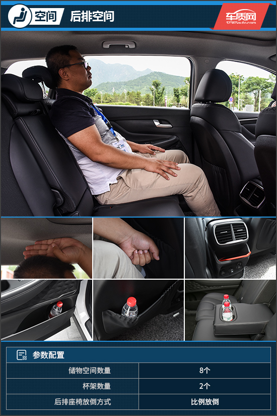 保持前排座椅位置不变,体验者来到后排,坐好后头部空间为四指,腿部为一拳,地板是纯平设计,对于一款四驱车型来说相当难得。第二排乘坐空间表现良好,只是纵向高度并不算宽裕,分析看来应该是车辆地板较高导致。