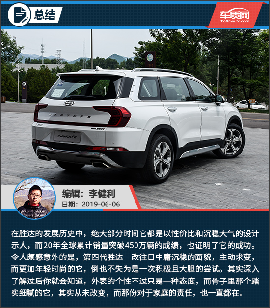2+2+2布局的6座版是第四代胜达的主推车型,第二排配备了两张独立座椅,舒适性表现更佳,而且座椅中间的过道也更方便进出第三排。除了舒适性以及实用性角度考虑以外,6座版车型在验车环节相比7座车型也具备了一定的政策优势,所以综合来看,如果是一般家用选择,还是更为推荐5座或6座版车型。