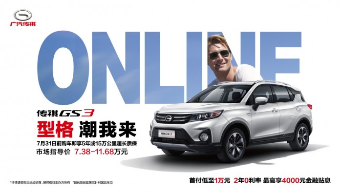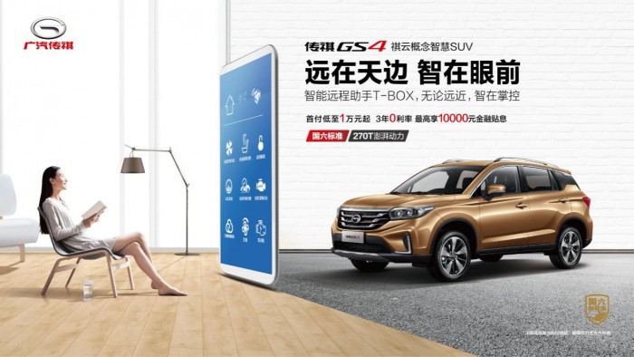 智联潮品SUV传祺GS3(参数|图片),凭借新锐动感的光影设计美学打造的潮流外观,搭载智慧传祺T-BOX车联网3.0,带给您触发智能生活掌控新风潮的酷炫感。现购买传祺GS3即可享受:首付低至1万元,2年0利率最高享4000元金融贴息,以及5年或15万公里超长整车质保优惠政策。