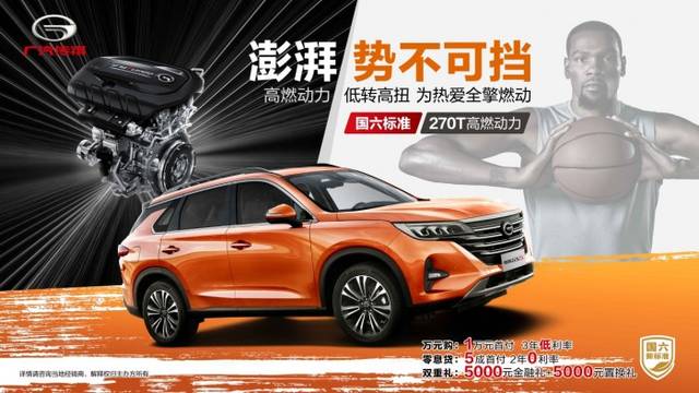 新世代驾享先锋SUV传祺GS5,将驾控性能和乘坐享受高度融合,搭载传祺第3代270T发动机,Ti-Power 3.0高燃动力,在实现高效动力与燃油经济性完美平衡的同时更是让驾乘的愉悦发挥得淋漓尽致。现购买传祺GS5(参数|图片),即可享受: 1万首付,3年低利率的万元购,5成首付,2年0利率的零息贷,以及5000元金融礼+5000元置换礼,还有5年或15万公里超长整车质保优惠政策。