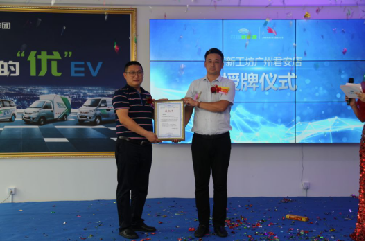 此次开业典礼进行了授牌仪式,意味着开新工坊4S直营店正式在广州扬帆起航,标志着开瑞新能源4S店经营模式的重大蜕变与新生。广州君安开新工坊的开业,对传统4S店做了商业模式转型和升级,也将全面推动同城货运配送产业和网约车业务的升级和发展。