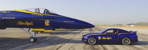 身披荣耀与使命,2011年福特又发布了一款蓝天使飞行表演队涂装的Mustang,这辆车采用锃亮的镀铬一样的蓝色烤漆,并配合蓝天使飞行表演队的黄色拉花,和使用F-18的美国海军蓝天使飞行表演队采用一模一样的涂装风格。蓝天使飞行表演队被认为是世界上最早组建的飞行表演队,主要为海军和陆战队的征兵宣传服务,不仅面向美军、美国民众,还面向国际间的友谊需要。可以说,蓝天使就是美国海军的一张名片,而这款福特Mustang亦是成为史上最拉风的涂装Mustang。