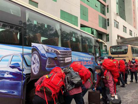 接受国家卫生健康委的调度,广东省第二人民医院国家紧急医学救援队紧急出征援鄂。2月3日,在3台紧急救援车和4台救援物资运送车辆组成的紧急医学救援队载着“帐篷医院”和防护物资出发驰援武汉后,2月4日,60人医疗队伍急需出发至广州南站乘坐高铁,因无法租到车辆,请求广汽传祺给予交通支持。收到消息后,广汽传祺迅速对应,紧急调度车辆,及时而顺利地将医疗队伍护送至广州南站,获得广东省第二人民医院称赞。