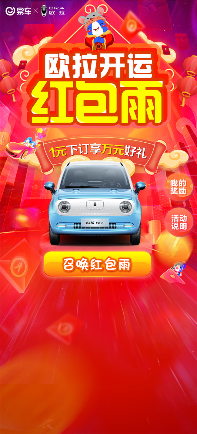 不仅如此,2月14日当天,欧拉还将在易车APP狂降10000份欧拉开运红包雨,不仅有机会抢到最高198元的现金红包,还能获得MO卡会员卡等多重惊喜奖励。活动期间前四十名购买欧拉R1、欧拉iQ车型的网友,满足要求还将获得易车专属520元现金红包。