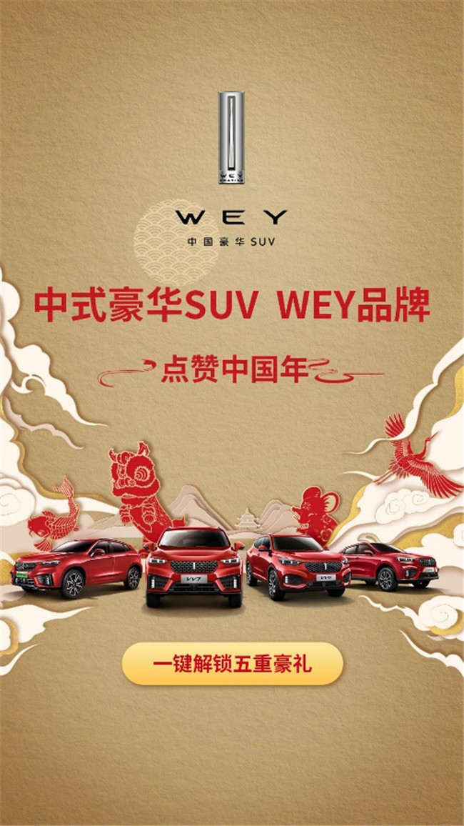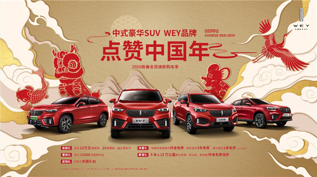 乐中国年,享中国WEY——WEY爱钜惠。WEY品牌在春节期间还推出了2020新春全民焕新购车季钜惠活动,同时还为购车用户送上专属定制的新春礼包,以至臻服务和豪华品质回馈用户。