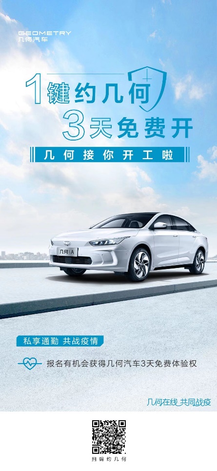 经历了一个“超长待机“的春节假期后,各企业陆续复工。相比坐地铁、挤公交,开私家车上班可谓当下最安全的出行方式。为解决用户对通勤用车的安全顾虑,几何汽车针对北京地区推出”一键约几何,三天免费开“活动:即日起至3月31日,凡拥有北京新能源指标用户及换购用户,只需扫描下图中的二维码报名,便有机会获得几何汽车旗下几何A或帝豪GSe 3天免费使用权。同时,在疫情期间,为缓解大家“一罩难求”的问题,凡报名活动成功的用户,即可得到几何汽车赠送的通勤口罩5只,给你更安心的呵护。在用户取车、用车的同时,几何汽车也会对相关工作人员和车辆进行严格的防疫筛查和消毒,确保用户的驾乘安全。