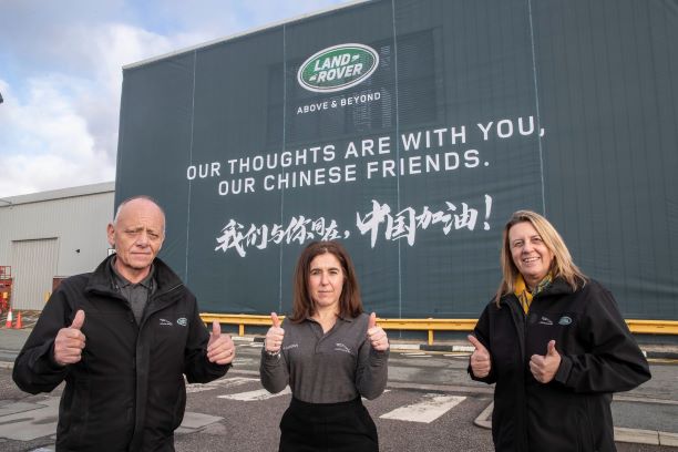 新型冠状病毒感染的肺炎疫情来势汹汹。这场没有硝烟的战争,时刻牵动着全中国乃至全世界人民的心。作为一家英国豪华汽车企业,捷豹路虎全力战“疫”。近日,捷豹路虎董事会成员、位于英国布罗米奇堡(Castle Bromwich)和哈利伍德(Halewood)的工厂的员工以及位于哈利伍德(Halewood)的路虎工厂的员以及位于哈利伍德(Halewood)的路虎工厂的员纷纷发起声援行动,以“我们与你同在,中国加油!”字样的横幅,表达了对于中国人民的深切关怀和全力支持。