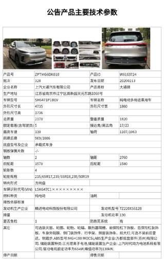 【上汽MAXUS首款全新纯电动SUV EUNIQ 6公示信息】