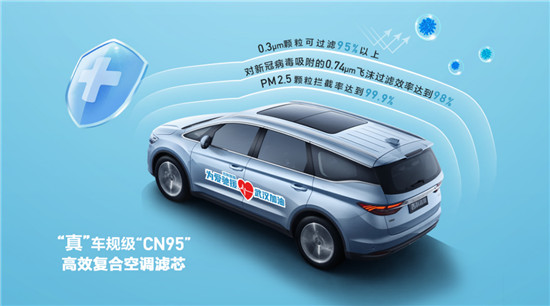 吉利产品全系标配的车规级CN95空滤采用了活性炭、高效无纺布、多层复合介质等孔径更小的新型滤芯材料,不仅可以防霉除异味,除烟雾、粉尘、花粉等易致敏物质,还能实现对直径0.3µm的颗粒过滤效率达到95%以上,对新冠病毒吸附的通常大于0.74µm飞沫的过滤效率能达到98%,并且能够有效过滤掉空气中的PM2.5颗粒,拦截效率达99.9%以上,为吉利车主疫情期间出行提供N95型口罩级的多重健康防护。