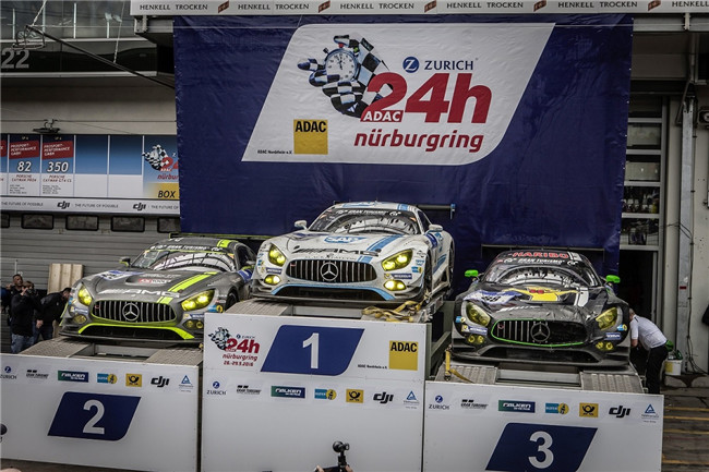 2016年,新赛车在其第一个完整赛季中一鸣惊人——在第44届纽博格林24小时耐力赛中,AMG GT3历史性的包揽了前四名的佳绩,这迄今仍然是AMG客户赛车运动史上最辉煌的单场比赛成绩。