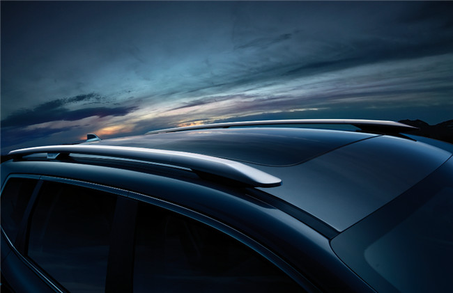 车顶悬浮式行李架如天际双轨横越延伸,为硬朗车身再添巍然天成的气势。同时,空气动力学的流线型设计还可有效降低风阻,兼具造型之美与实用价值。