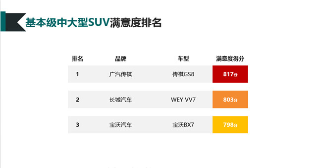 | 基本级中大型SUV | 传祺GS8 | 广汽传祺 | 817 |