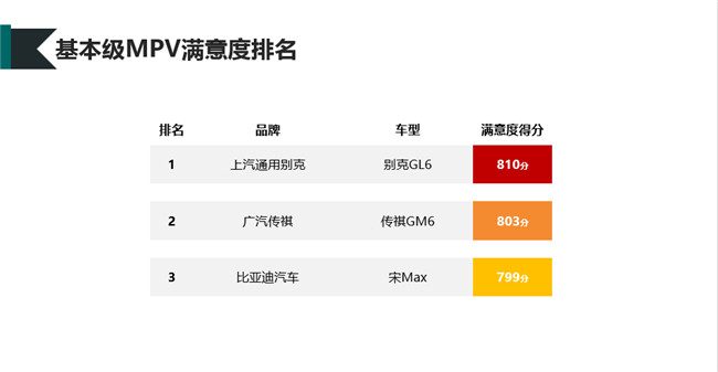 | 基本级MPV | 别克GL6 | 上汽通用别克 | 810 |