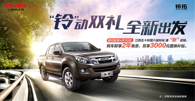 在皮卡“解禁”的东风劲吹之际,江西五十铃针对国六产品推出钜惠政策诚意回馈用户切实需求:铃拓两年免息降低购车压力,同时增加3000元置换补贴;瑞迈S享受5000抵10000元现金优惠,优惠后价格9.98万起,全面助力复工复产!