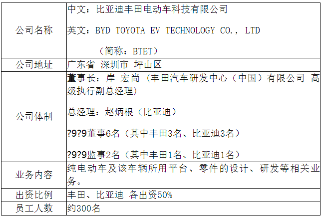 丰田与比亚迪将通过开发和普及受消费者喜爱的纯电动车,努力满足消费者多样化的需求,同时为中国的环境改善贡献力量。