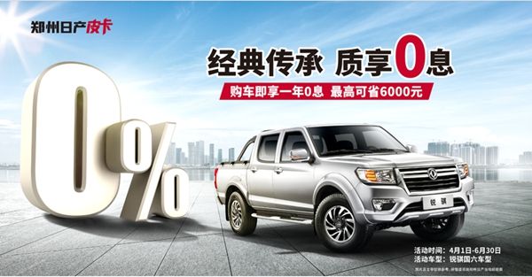 春天已经到来,全国各行各业正在积极复苏,消费者对于车辆的需求也将逐步提升,为了帮助他们有效减轻工作及生活用车负担,助力经济发展,郑州日产适时推出暖心购车政策,2020年4月1日至6月30日,购买郑州日产锐骐国六车型,即可享一年0息礼遇,最高可省6000元,品质皮卡轻松“贷”回家。