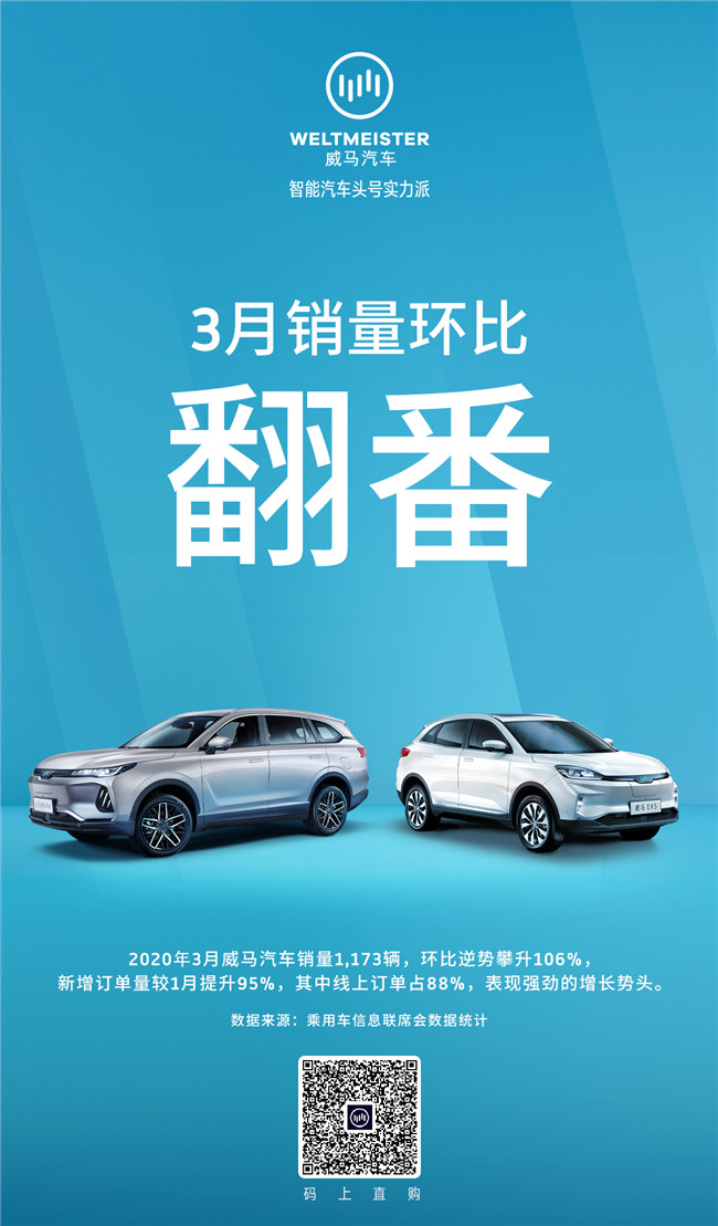 3月威马汽车销量环比增长106%,新增订单量较1月提升95%,