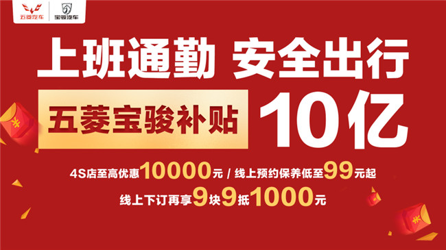 为了感谢广大用户的信任与期待,进一步响应国家消费刺激政策,上汽通用五菱宣布发放高达10亿的国民购车补贴,为中国经济恢复平稳运行提供强势助力。即日起,五菱宝骏线下经销商将为全国消费者提供最高10000元的购车补贴。4月10日起,消费者还可登录菱菱邦APP、菱菱邦用户之家微信公众号等指定线上渠道,支付9.9元定金获得1000元保险消费券,享受低至8折的保养套餐,还有机会抽取48888元购车基金。