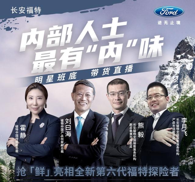 直播当中,福特汽车(中国)有限公司产品创新副总裁刘曰海先生,福特汽车(中国)有限公司公关副总裁霍静女士,长安福特全国销售服务机构副总裁兼市场总监熊毅先生和产品市场副总监李月飞先生探班大片拍摄现场,以绝对内部人士的角度,抢先揭秘全新第六代福特探险者Explorer的强大底气——基因强大·样样强大。