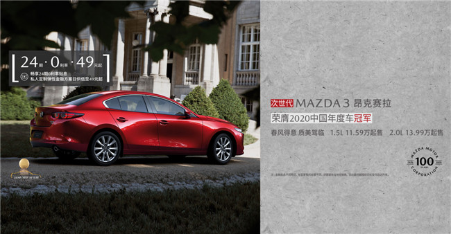 目前,购买次世代MAZDA3昂克赛拉可以享受24期·0利率金融贴息政策。广大车友可前往长安马自达各地授权经销商店铺体验「人马一体」试乘试驾,零距离体验「世界设计车」风采,感受「惊鸿3生」。