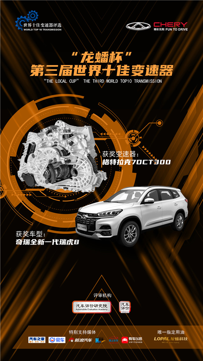 4月17日,备受业界瞩目的“龙蟠杯”第三届世界十佳变速器评选活动落下帷幕。经过严格的实车测试和专家评委审定,奇瑞汽车旗下旗舰SUV--全新一代瑞虎8荣获“世界十佳变速器”车型荣誉称号,这也是继2019年全新一代瑞虎8搭载的1.6TGDI发动机,荣获“中国心”十佳发动机后获得的又一殊荣。自此,全新一代瑞虎8也成为业内罕见的动力系统“双十佳”车型。
