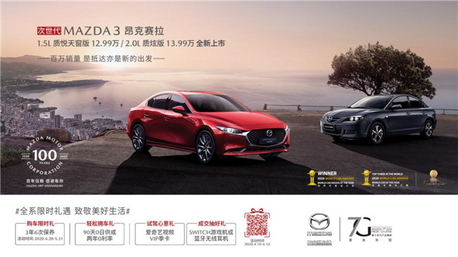 春夏之交,长安马自达次世代MAZDA3昂克赛拉将开启「全系限时礼遇,致敬美好生活」活动——