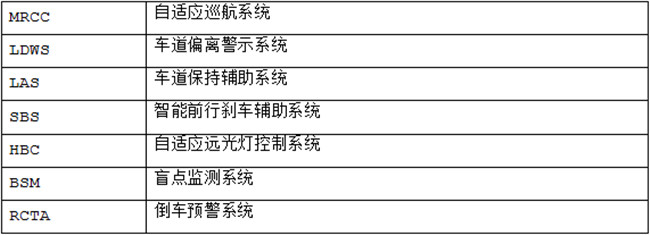 3.安选套装:MRCC·LDWS·LAS·SBS·HBC·BSM·RCTA(选装价10000元);