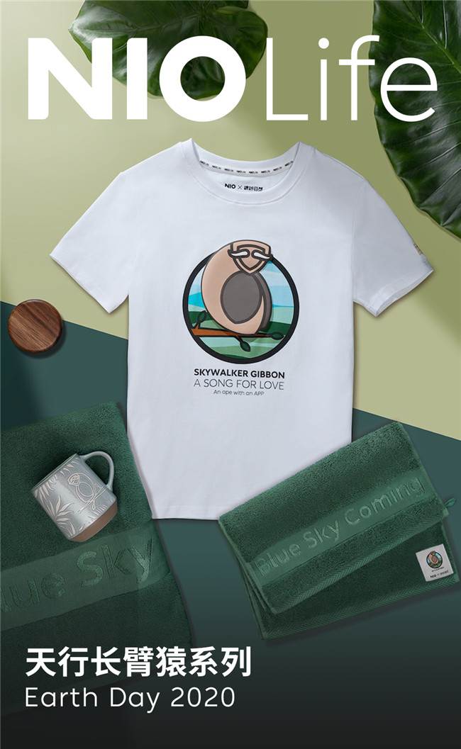 蔚来生活方式品牌NIOLife推出了天行长臂猿系列产品,设计灵感来源于天行长臂猿的习性和特征:常年栖息在高大树木上,拥有白色眉毛。产品选用环保材质,旨在不为地球增加负担。NIOLife承诺将销售额的15%捐赠给缤纷自然,用于中国猿影像的持续记录。