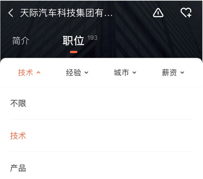 天际汽车官方网站和某招聘网站主页的招聘信息