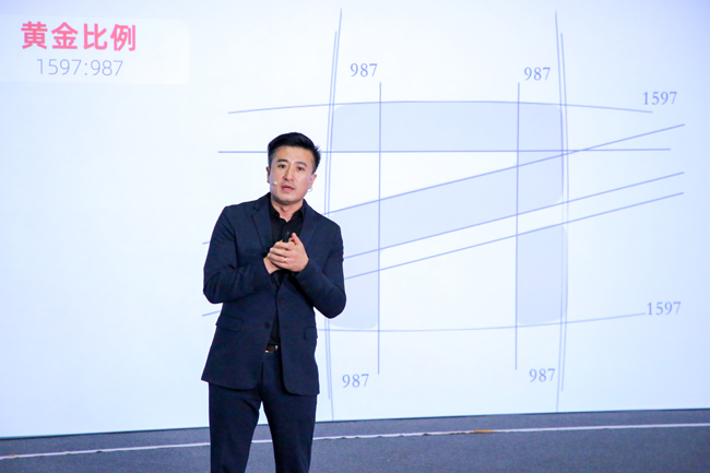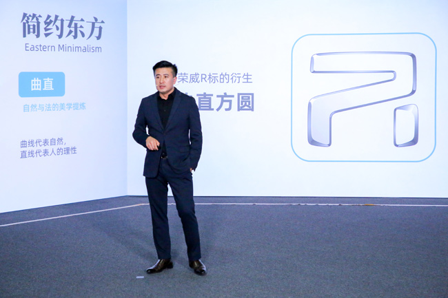 新标主要元素取自于荣威英文首字母R,力求打造超级符号R。R字母的优点在于简单、通用,设计难点在于它是26个字母中极少的既不左右对称也不上下对称的字母。以上汽集团技术中心副总设计师兼全球设计总监邵景峰为首的设计团队,秉持“少物性,多人性”的手法对字母进行设计形变,以理性结构表达感性。R的大轮廓采用两个1597:987的圆形框成,实现黄金比例;各倒角数值采用斐波那契数列,呈现秩序之美;整体打造出“均匀齐整,体正势圆”的视觉效果。