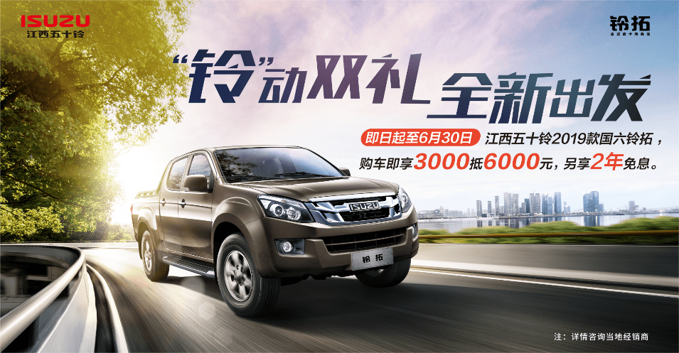 随着国内疫情防控形势持续好转,汽车市场逐步恢复到正常水平,被抑制的购买力也逐渐得到释放。尤其在皮卡解禁推进、各地促进消费政策的刺激下,皮卡市场上扬趋势明显。为帮助人们重新步入美好新生活快车道,江西五十铃诚意开启“铃”动双礼钜惠活动,携手新老用户全新出发。现在购买2019款国六铃拓可享3000抵6000元优惠,购车仅需10.88万起,另外享受两年免息政策,切实降低用户购车负担!