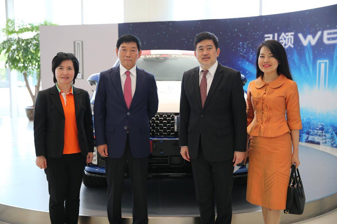 5月26日,泰王国驻华特命全权大使阿塔育·习萨目及夫人葛萌缇、泰王国驻华公使钟宝芬等一行应邀参观访问长城汽车。长城汽车董事长魏建军、副总裁刘向上、孟祥军、张佳明等陪同参观。