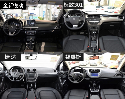 小结:内饰方面,全新悦动8英寸悬浮式触摸液晶屏,科技感十足,更为人们带来全新选择;标致301配色清浅,舒适感强;新款捷达和福睿斯的内饰走简约风。