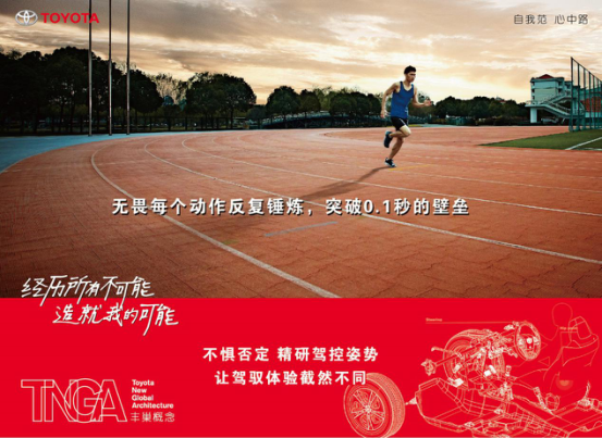 我们或许不能登上世锦赛成为田径王子,但是对于运动的热爱将永远成为生活中的执着追求,作为一名非专业的跑步者,他曾无数次无畏挑战,只为突破0.1秒的壁垒,跑者者如此,丰田亦如此,从织布机的发明到高效混动模式的诞生,丰田的骨子里一直存在着一股挑战精神,TNGA丰巢概念下的全新丰田,也将成为这样一名敢闯敢拼的酷跑热爱者。